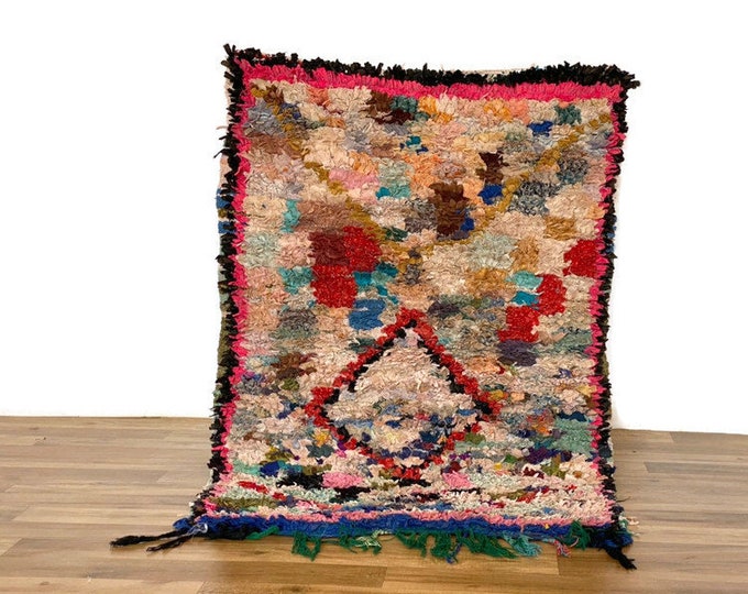 Authentic Vintage Moroccan Carpet,Handmade Berber Rug,Bohemian Home Style,Pink Rug,3'x4'ft
